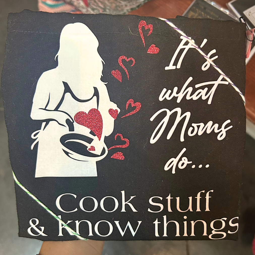 Black aprons featuring fun, quirky sayings—perfect for moms, dads, and anyone who loves to cook with personality. Designed in a variety of styles for both men...