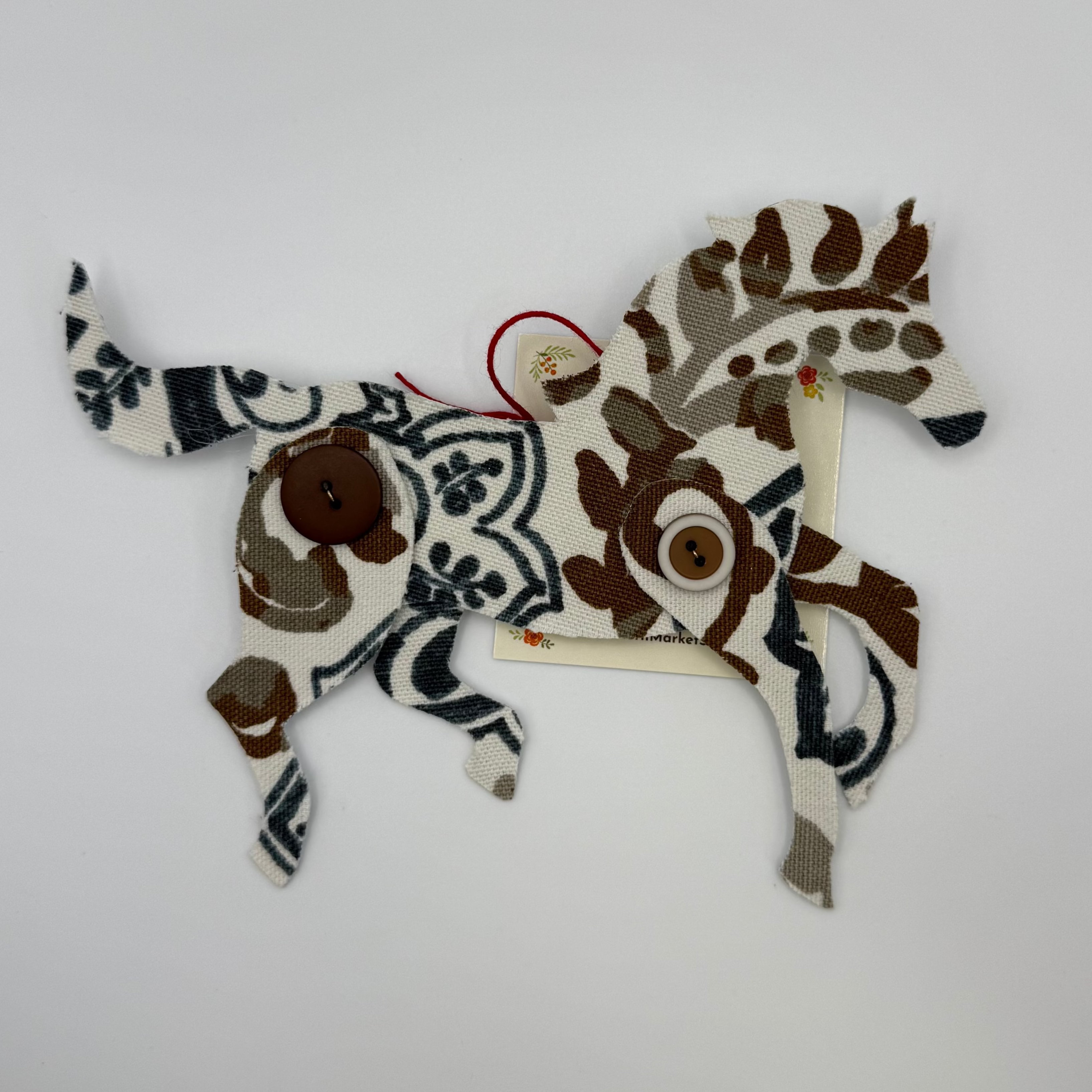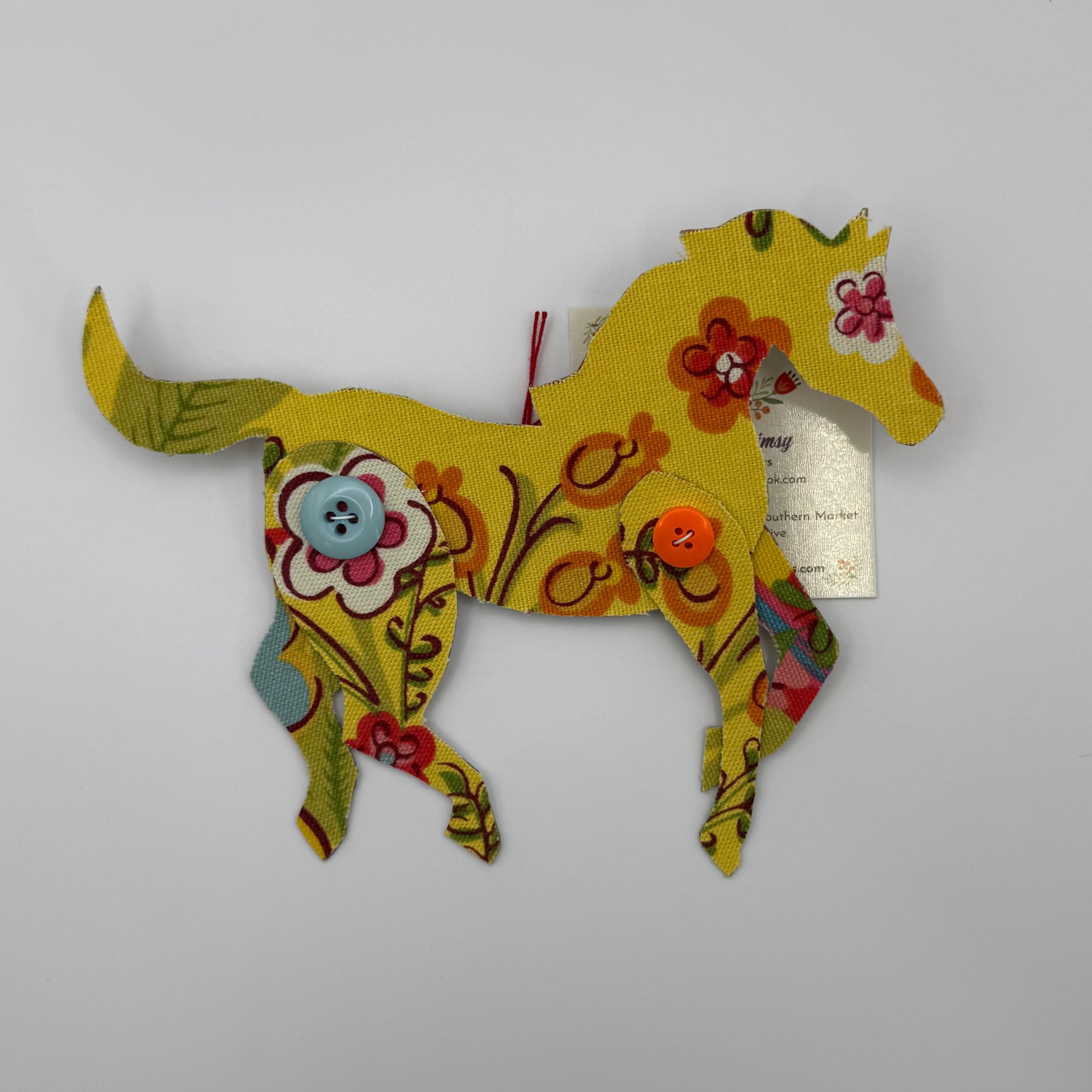 Pony wall hangs, made with colorful fabric and buttons. Movable legs. Buy 3 and get $3 off.