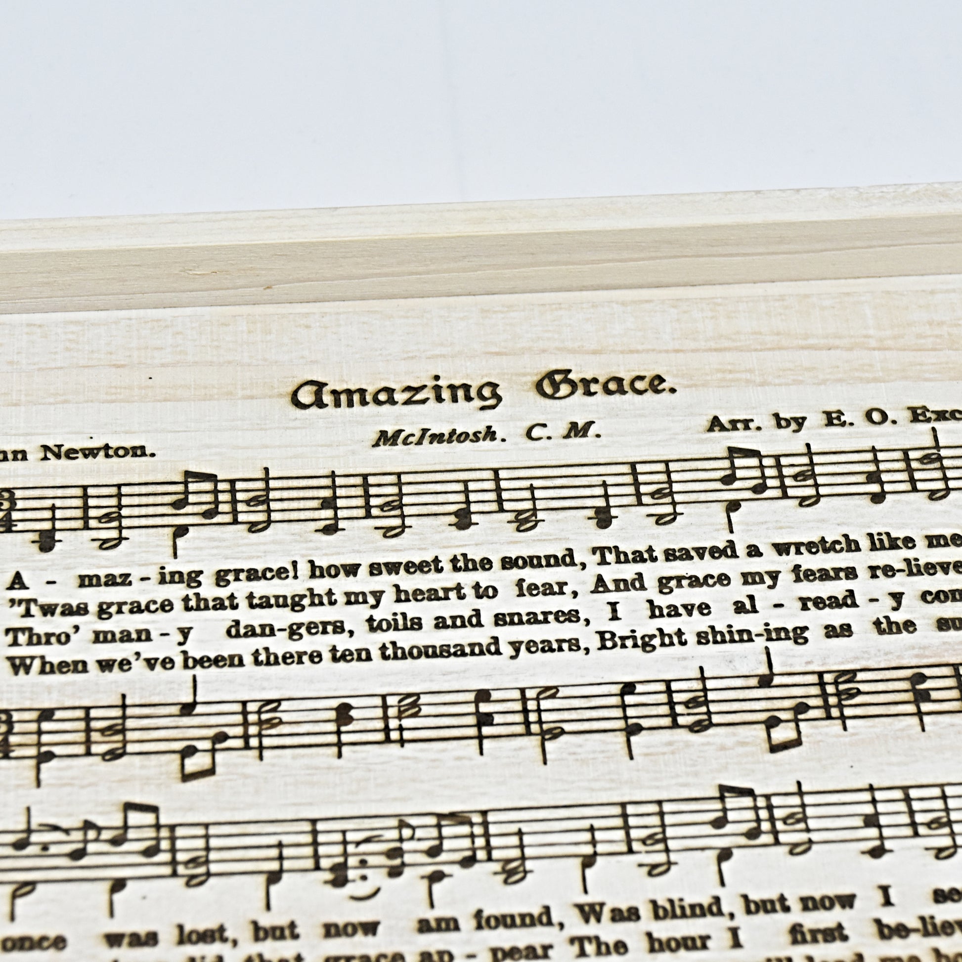 Celebrate the message of redemption and hope with this beautifully crafted “Amazing Grace” Hymn Sign. Expertly laser engraved, this timeless piece transforms one of the most cherished hymns in history into meaningful wall décor that inspires faith and reflection. The hymn, Amazing Grace, tells a powerful story of forgiveness, transformation, and God’s unfailing mercy. Its words have comforted generations and continue to remind believers that no one is beyond the reach of grace. Displaying this hymn in your home serves as a daily encouragement and a beautiful expression of faith. The design features finely detailed sheet music engraved into a softly finished whitewash background, creating a warm, vintage look that feels both classic and inviting.