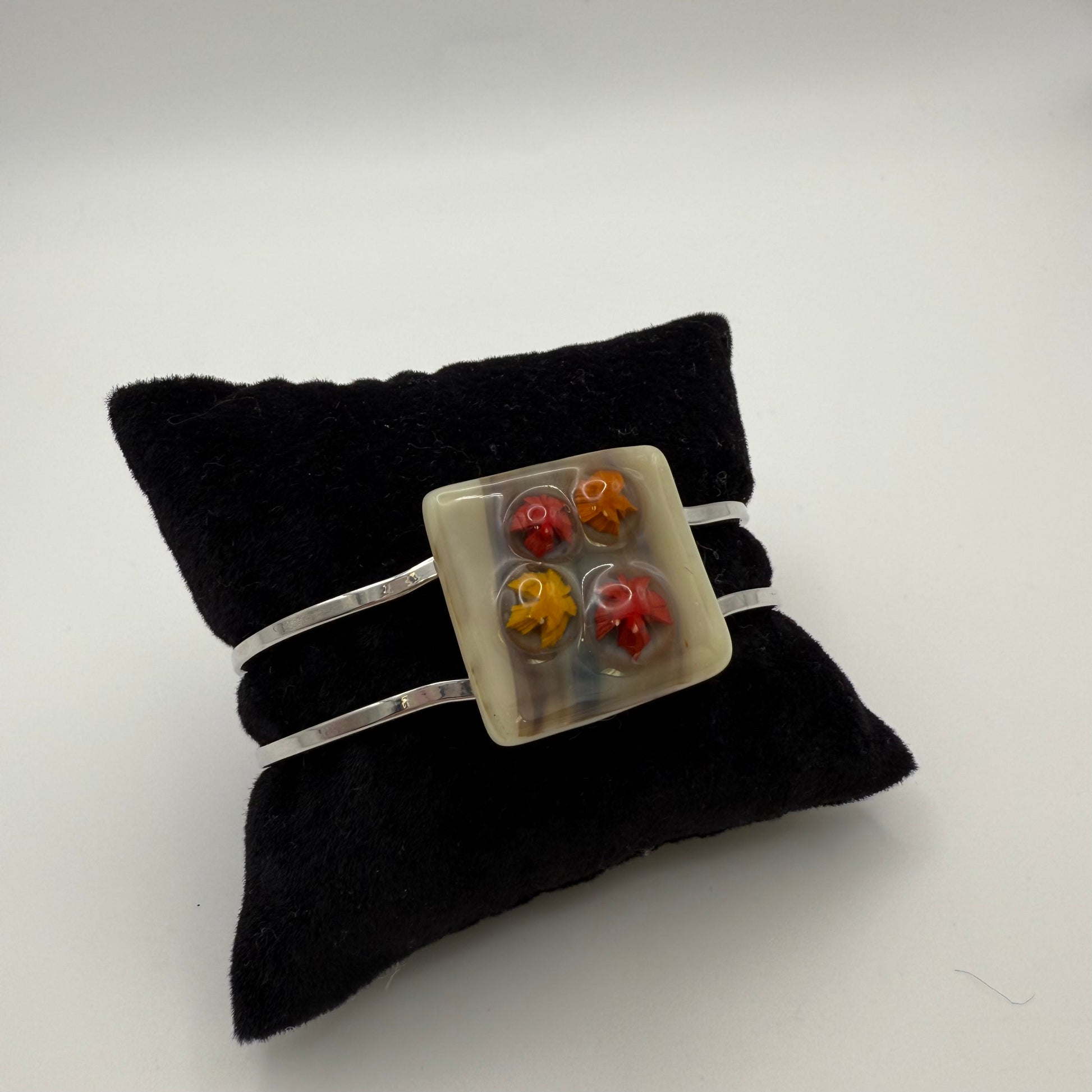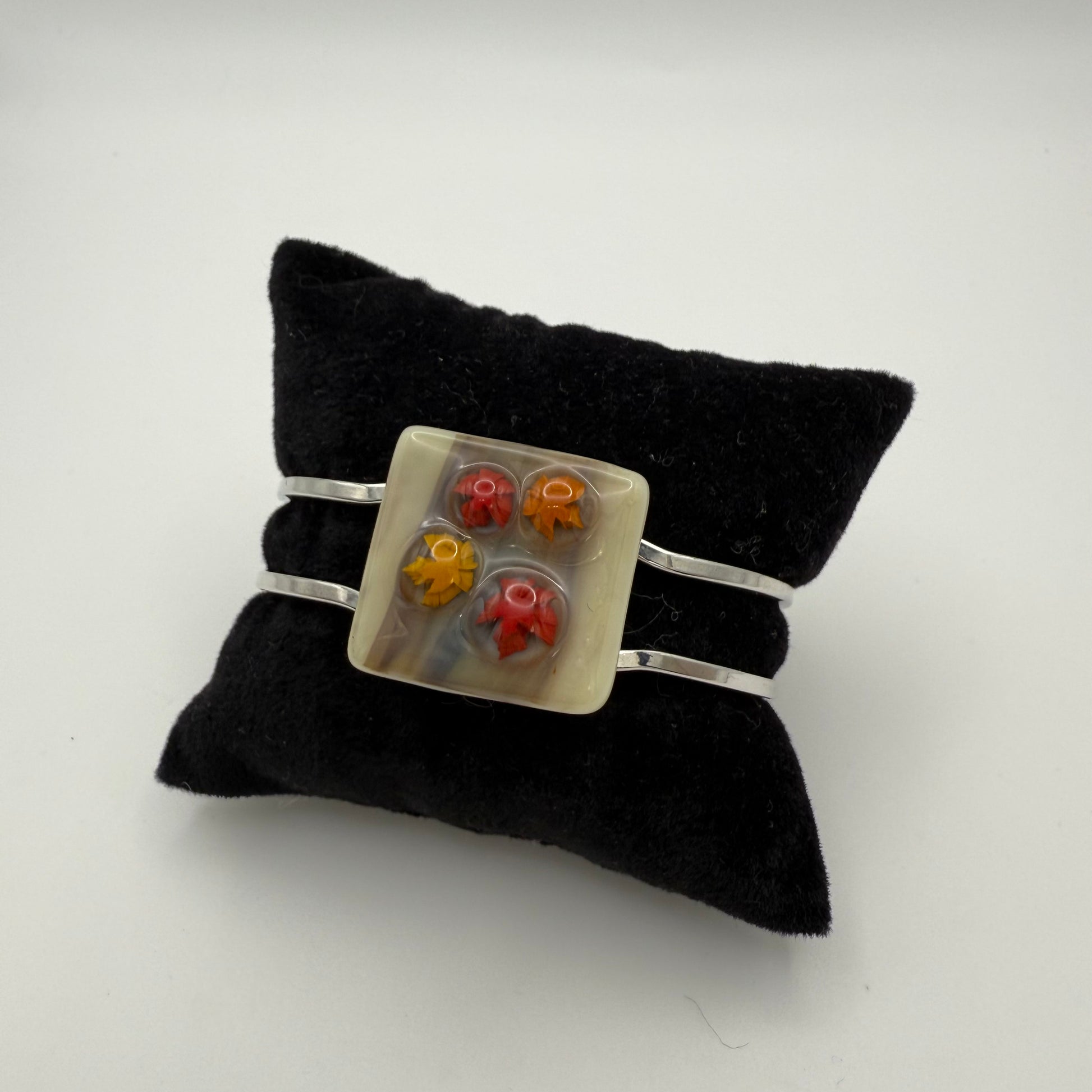 Bracelet crafted from glass, with detailed fall leaf motifs and silver metal
