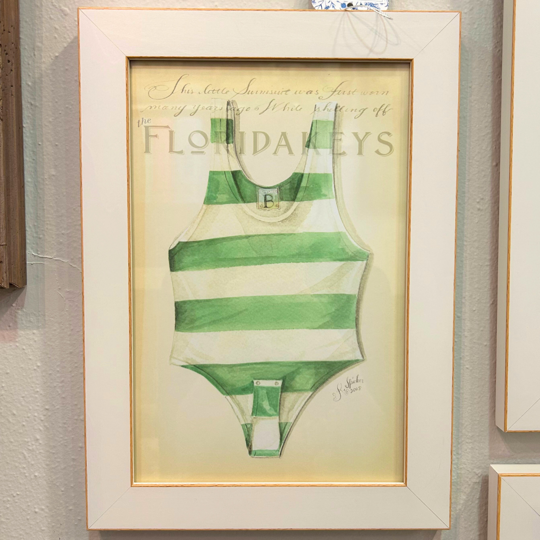 Green Striped Swimsuit Framed Artwork