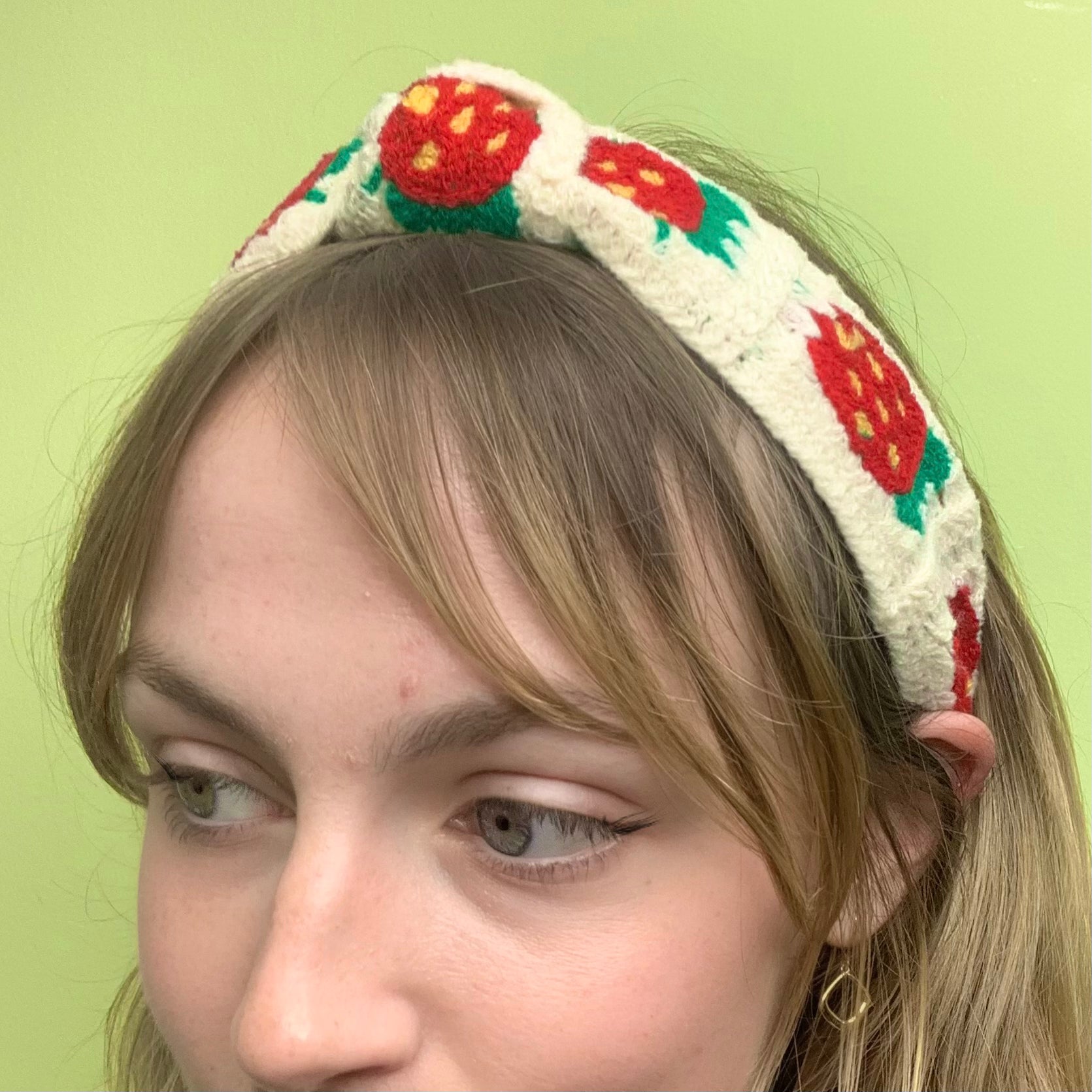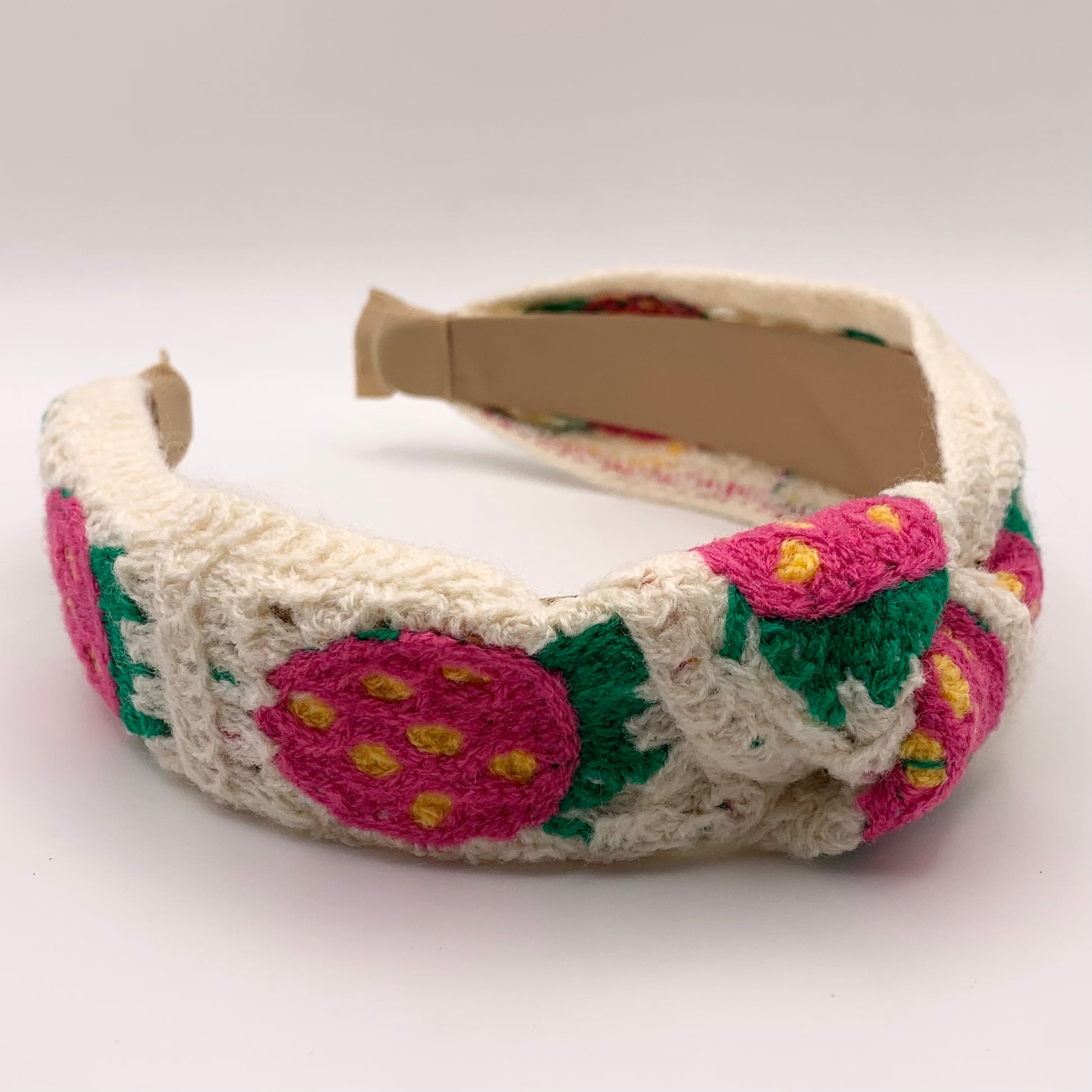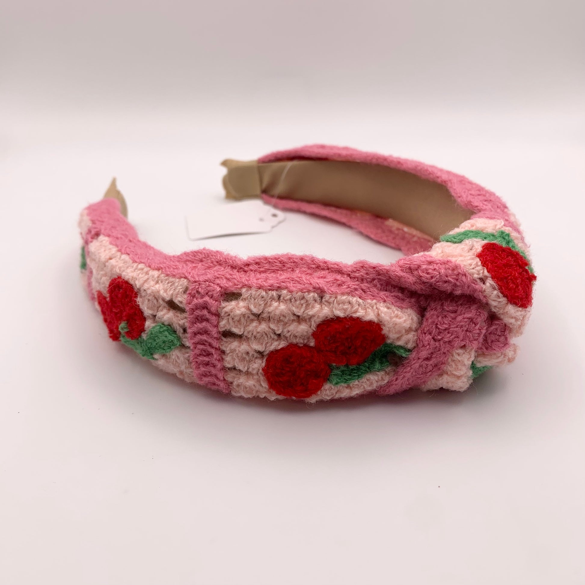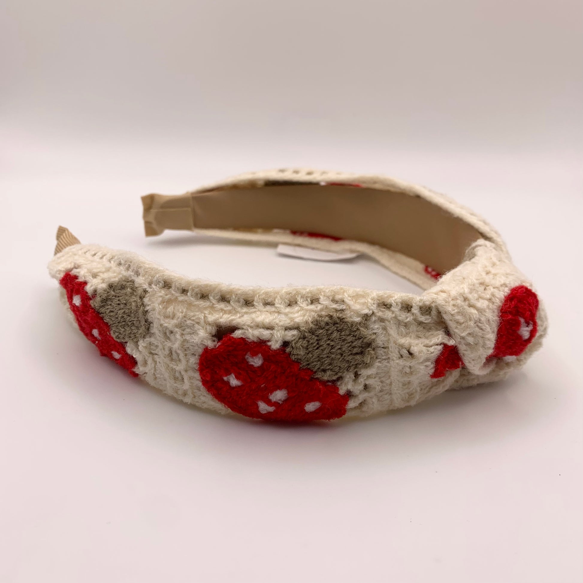 Add a pop of playful charm to your look with these knit headbands, each featuring a twist-knot detail on top. Whether you're in the mood for red strawberries, pink strawberries, cheerful cherries, or whimsical mushrooms, there's a pattern to match your style.