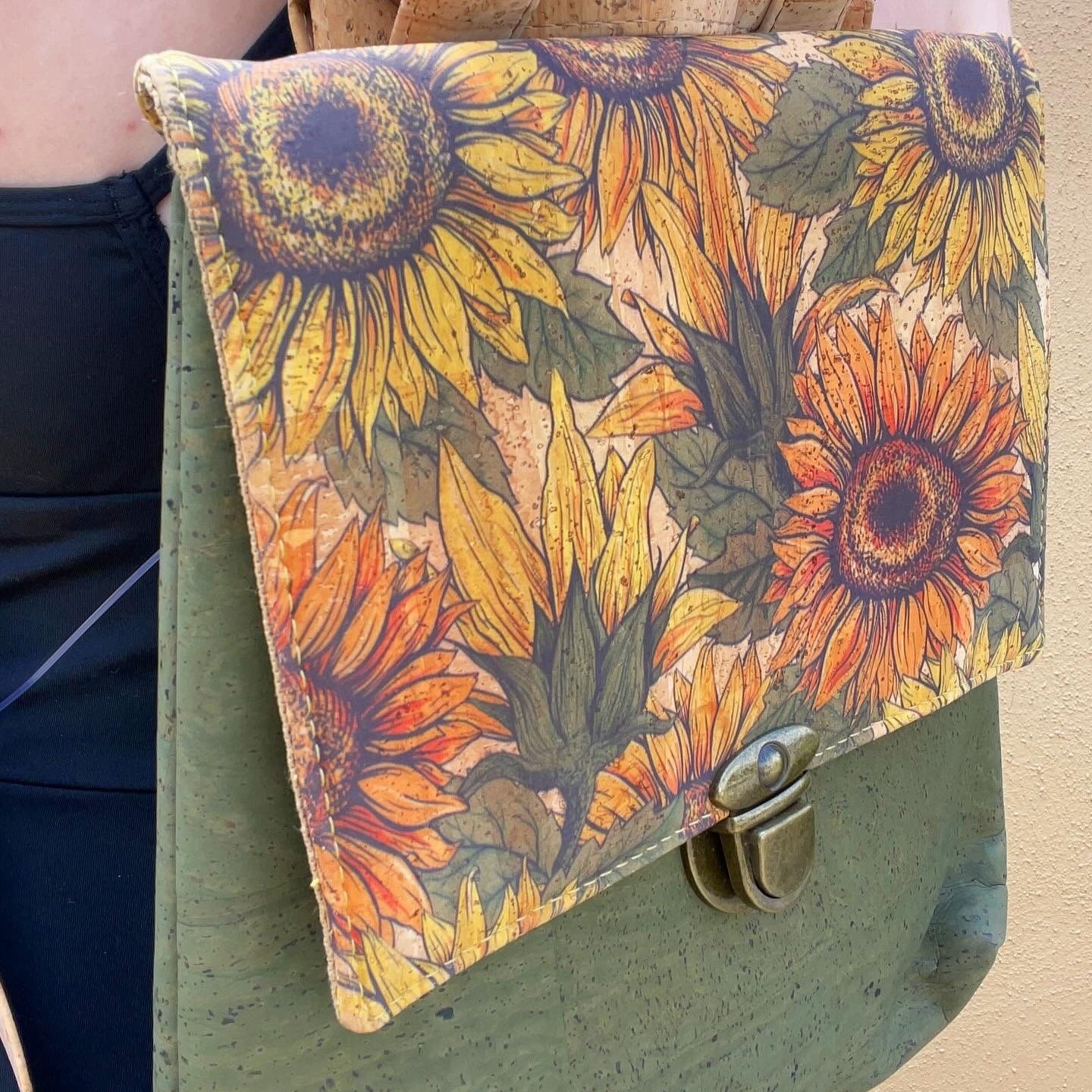 This all-natural cork backpack is a lovely blend of artistry and sustainability. The use of cork makes them lightweight, water-resistant, and vegan friendly. The sunflowers give a warm and sunny vibe, great for someone who loves rustic charm and sunny days!