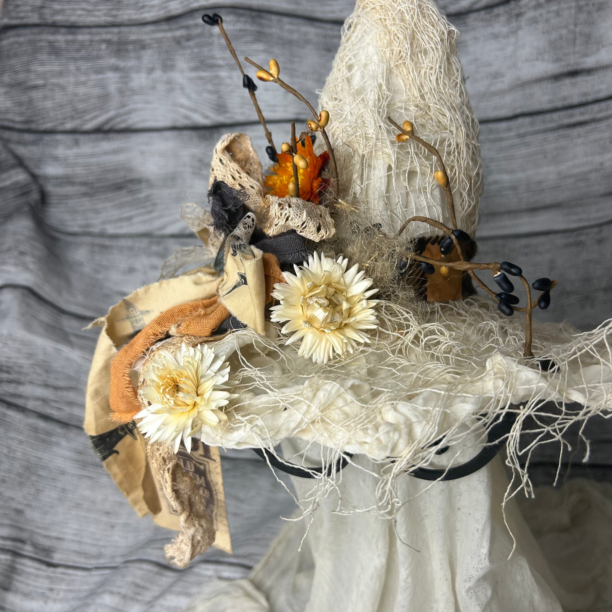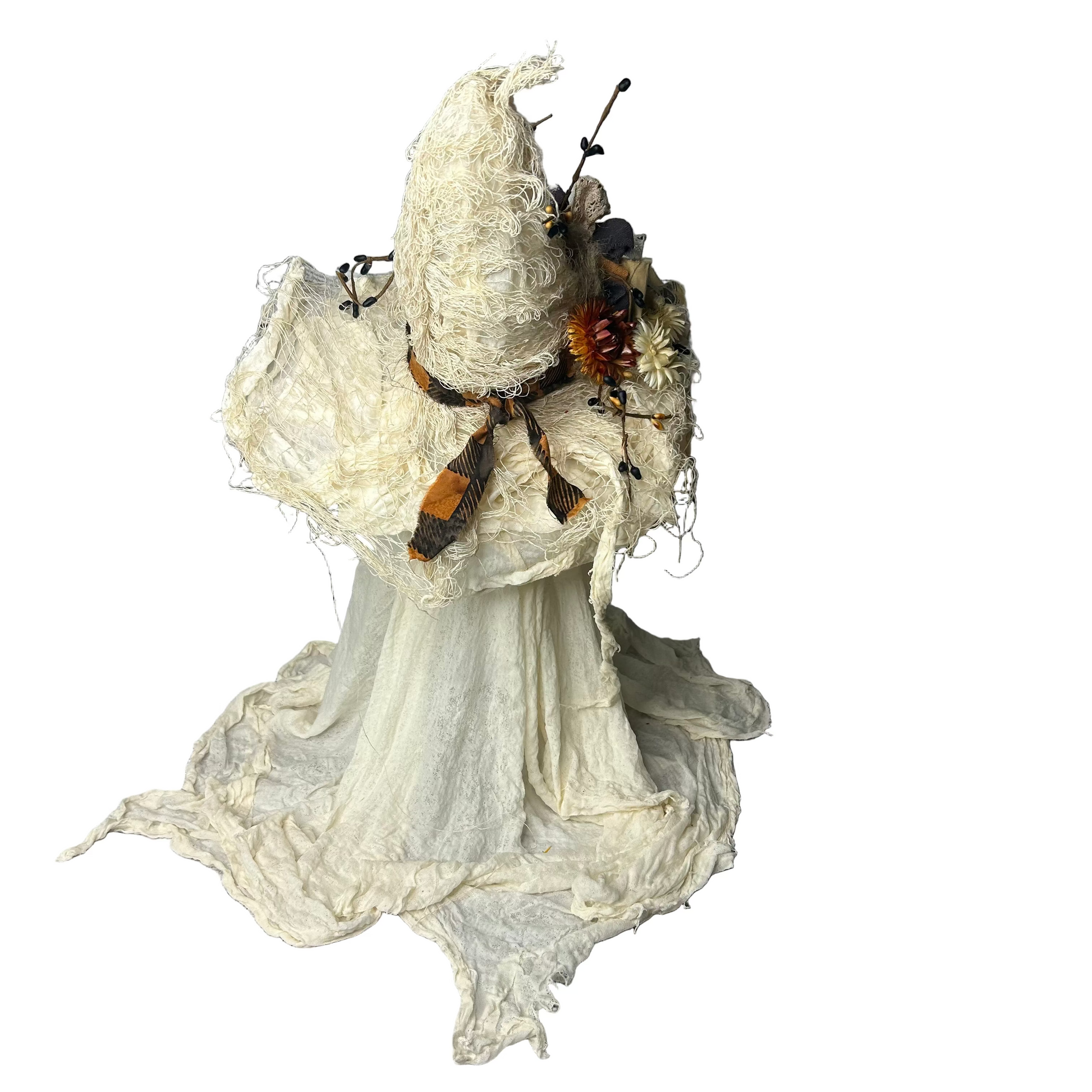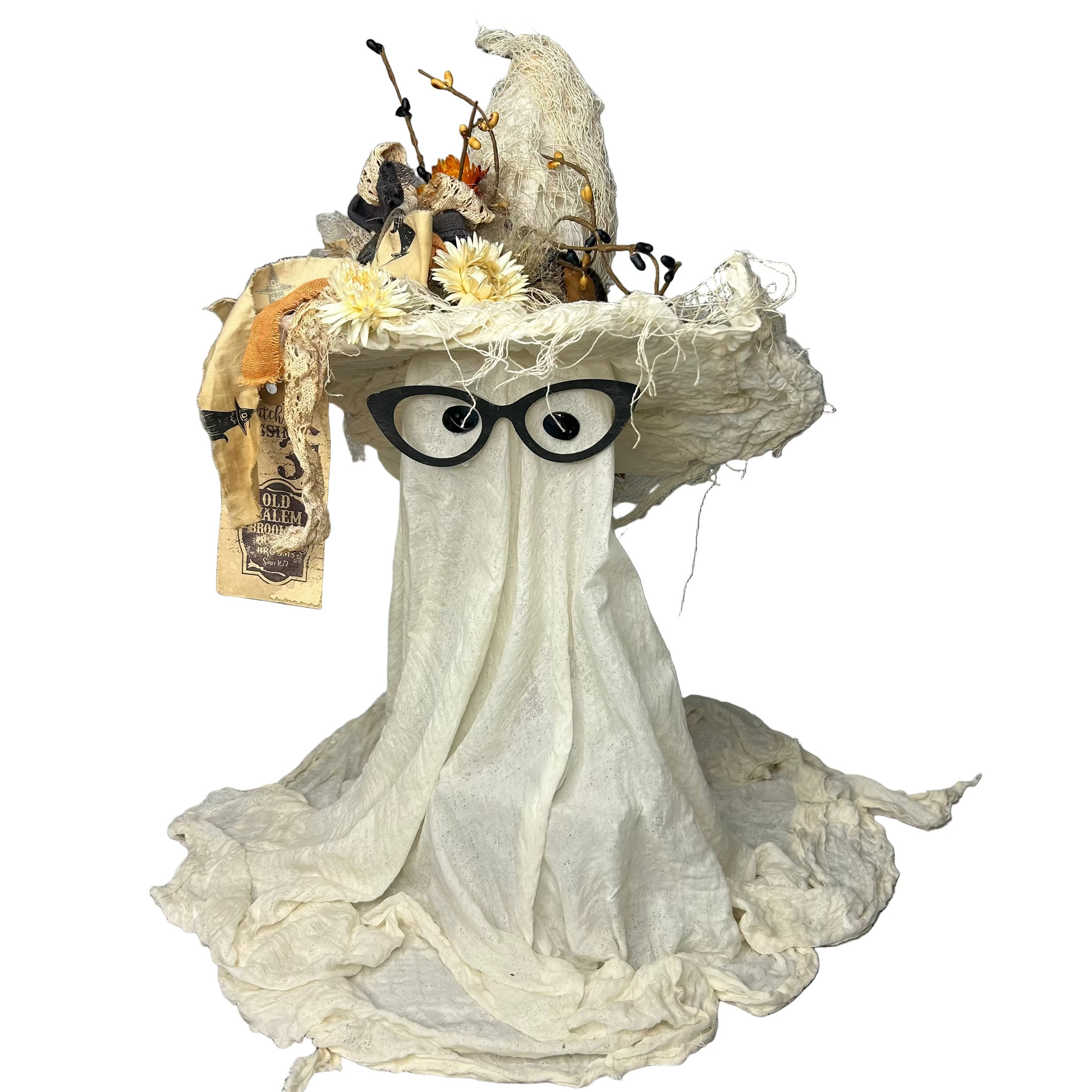Add a playful twist to your Halloween décor with "Sarafina Shortside", this lightweight ghost wearing glasses and a festive fall witch hat. The design gives the ghost a fun, lifelike movement effect. Hat is able to come off.
