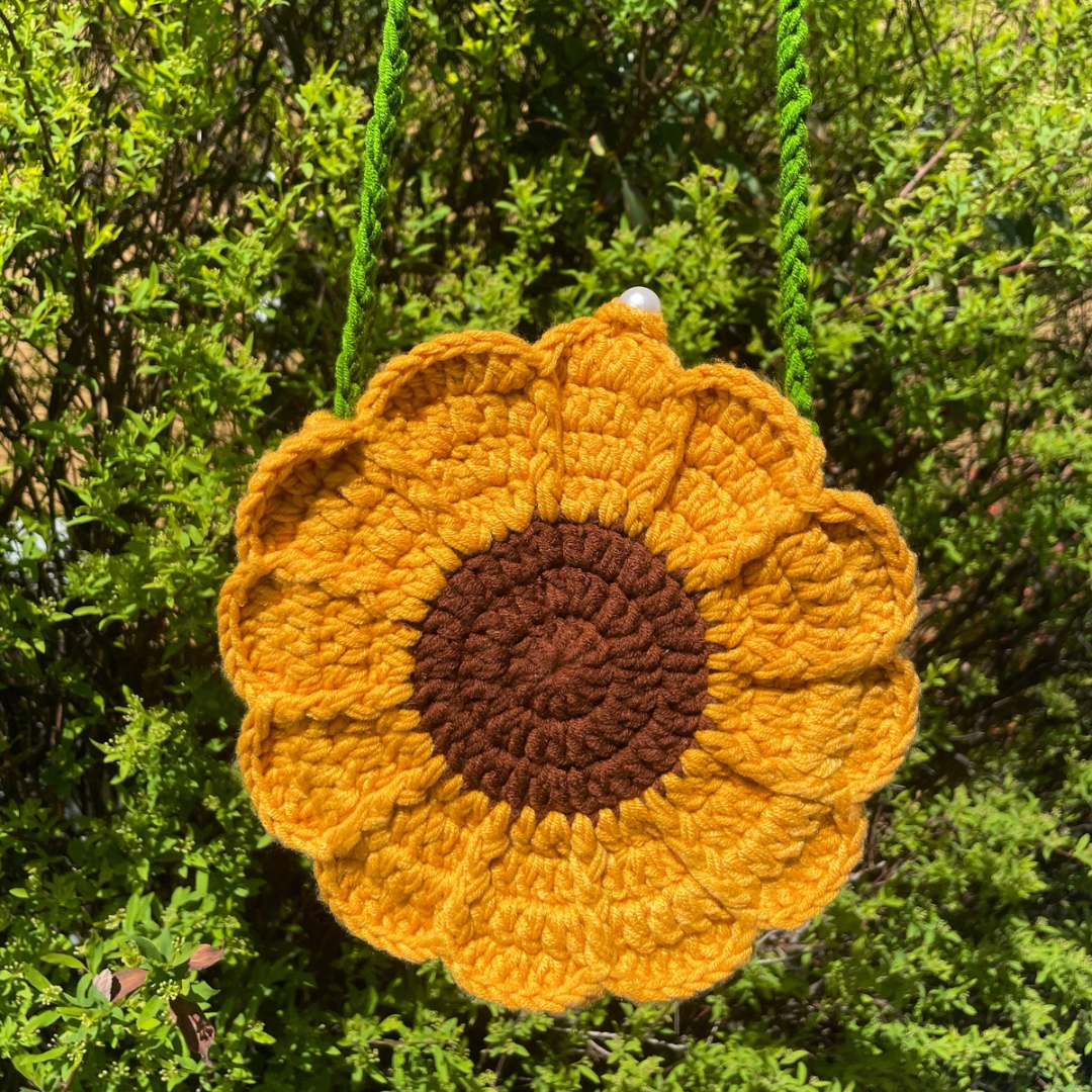 Hand-crotched crossbody sunflower purse! Adorable and fashionable with pearl bead latch.